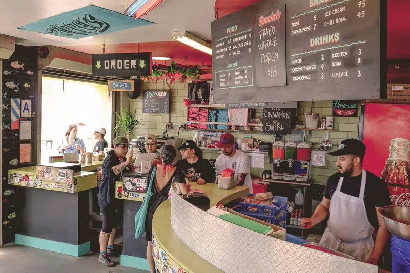 It’s part surf shack, part backyard hangout, part art space, and somehow all of it works. Rockaway Beach Surf Club is where you go to grab wax, check the swell, and then stay for a beer you didn’t plan on having. The shop carries boards, gear, and merch with that worn-in, salt-kissed look, plus art and goods from local makers. In summer, the patio fills with live music, tacos from Tacoway, and the hum of every kind of beach person. You could come here for a leash, but you’ll probably end up staying until the string lights come on.