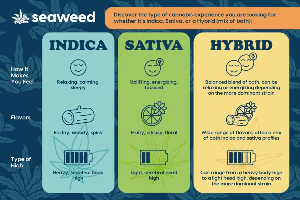 Need help choosing between an Indica and a Sativa? Stop by Seaweed, and one of our budtenders will be happy to answer any questions or assist you in making your selection.